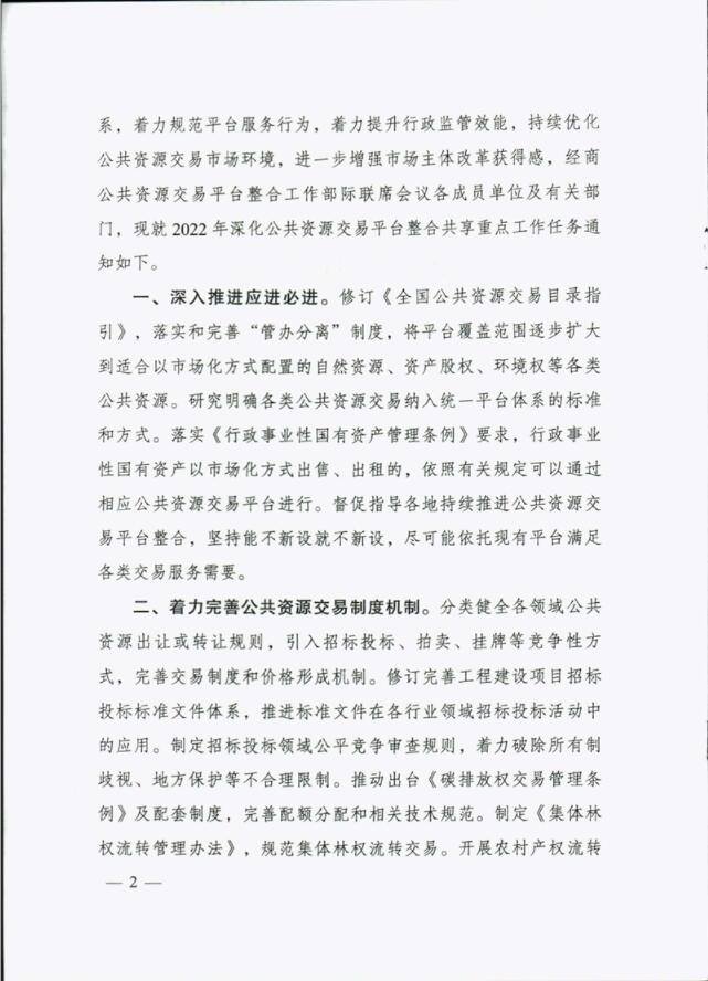 國家發(fā)展改革委辦公廳關(guān)于深化公共資源交易平臺整合共享2022年重點工作任務(wù)的通知